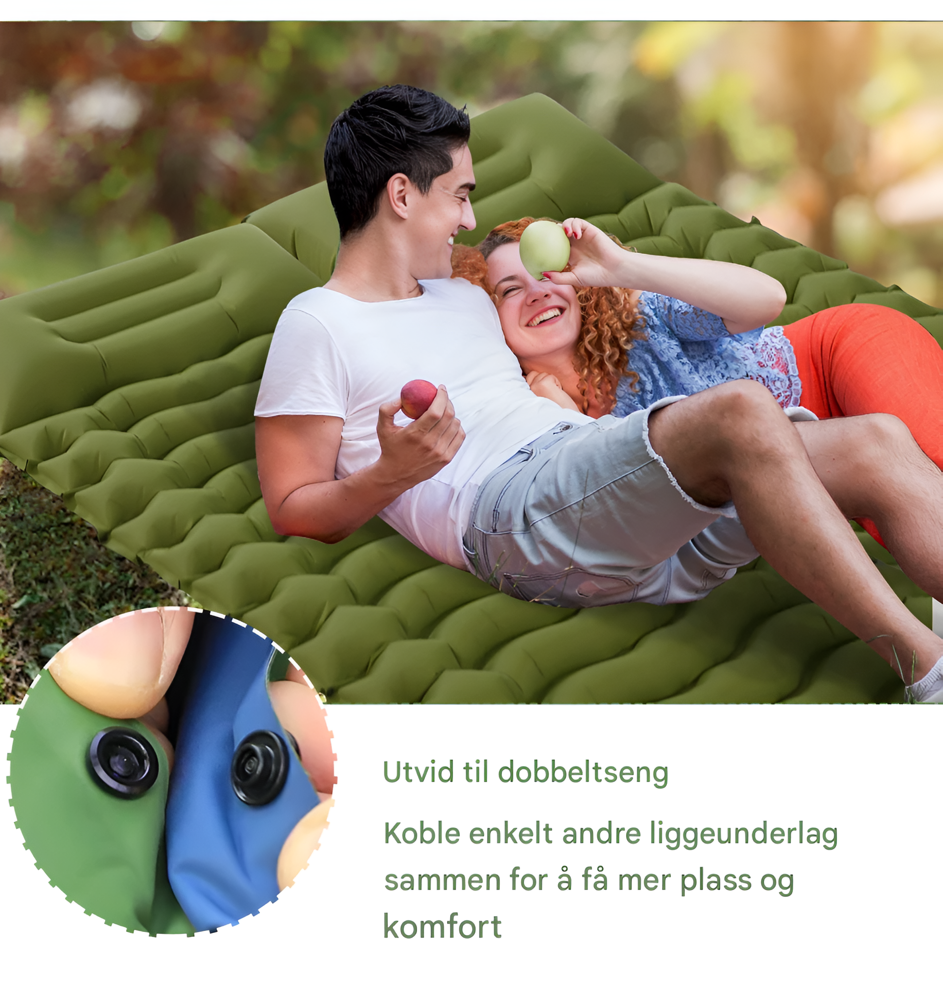 Fantastisk produkt! Oppblåsingen er superrask, og jeg kan koble sammen to madrasser for ekstra plass. Perfekt til familieutflukter.