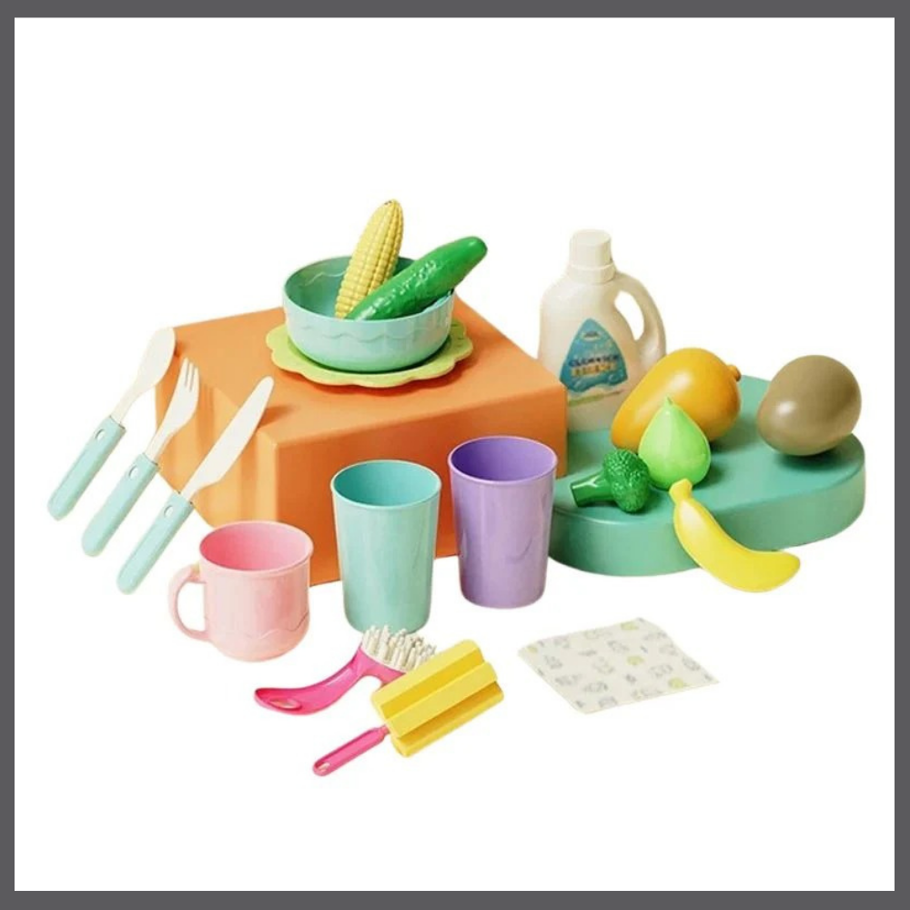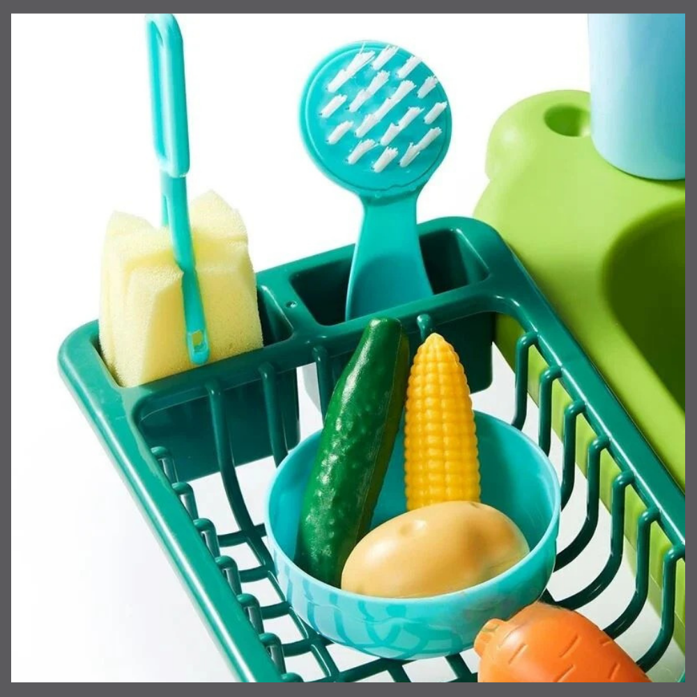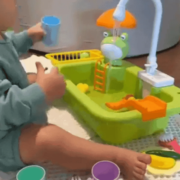 Dette leketøyet inviterer små til å lage mat, vaske og finne på tusen scenarier. Med sine flytende leker og rennende vann utvikler de sin fantasi, finmotorikk og lærer å samarbeide med søsken eller venner.