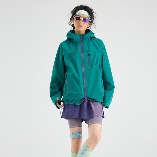 Denne vanntette jakken med hette er designet for å motstå regn og vind, slik at du kan nyte aktive dager uten bekymringer. Det spesielle stoffet beskytter deg effektivt mot fuktighet, slik at du kan nyte utendørs aktiviteter selv i kraftig regn.