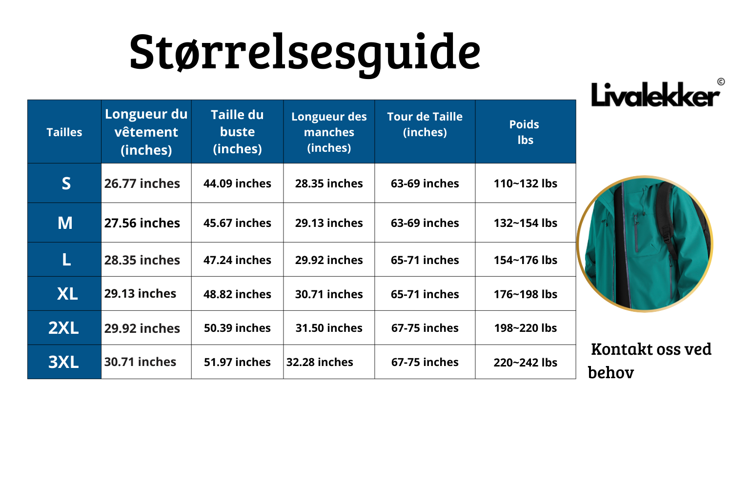 Vi anbefaler å vaske jakken for hånd eller i maskin på lav temperatur, og la den tørke lufttørk. Unngå bruk av mykner for å bevare stoffets vanntetthet.