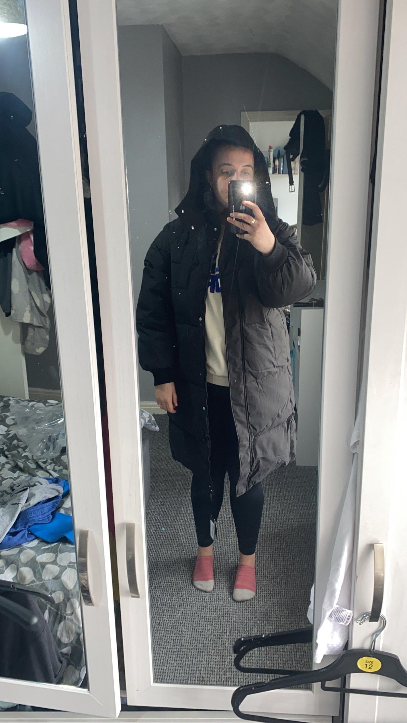 Kjempefornøyd! Denne jakken er perfekt til kalde vinterdager.