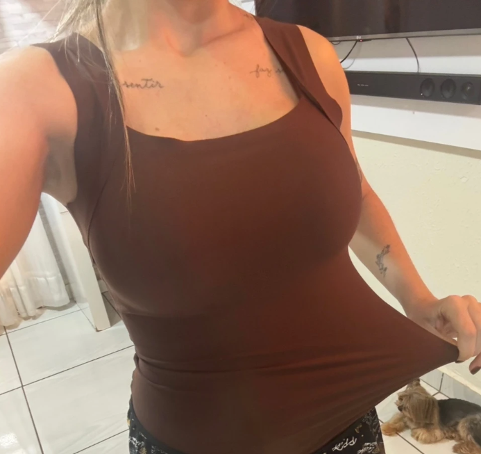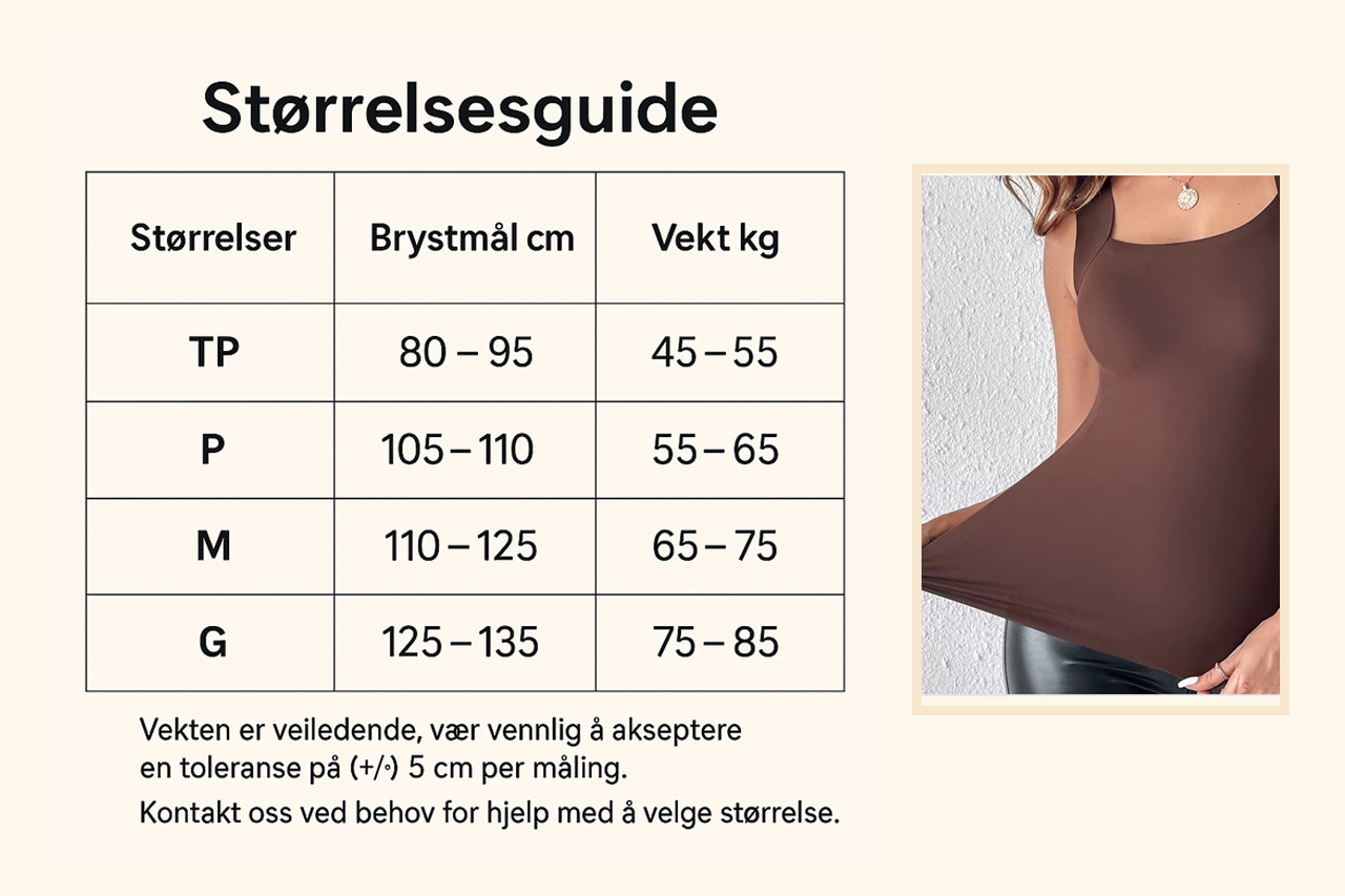 Denne revolusjonerende toppen med innebygd BH kombinerer komfort og lett støtte. Den tilpassede passformen fremhever midjen og former silhuetten, mens det myke, elastiske stoffet gir en behagelig følelse hele dagen. Perfekt for deg som vil droppe den vanlige BH-en – bruk den alene eller under klær for en elegant og praktisk look. Tilgjengelig i flere farger og ideell for hverdag, jobb eller trening.